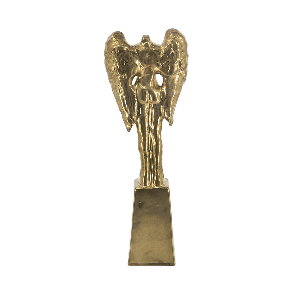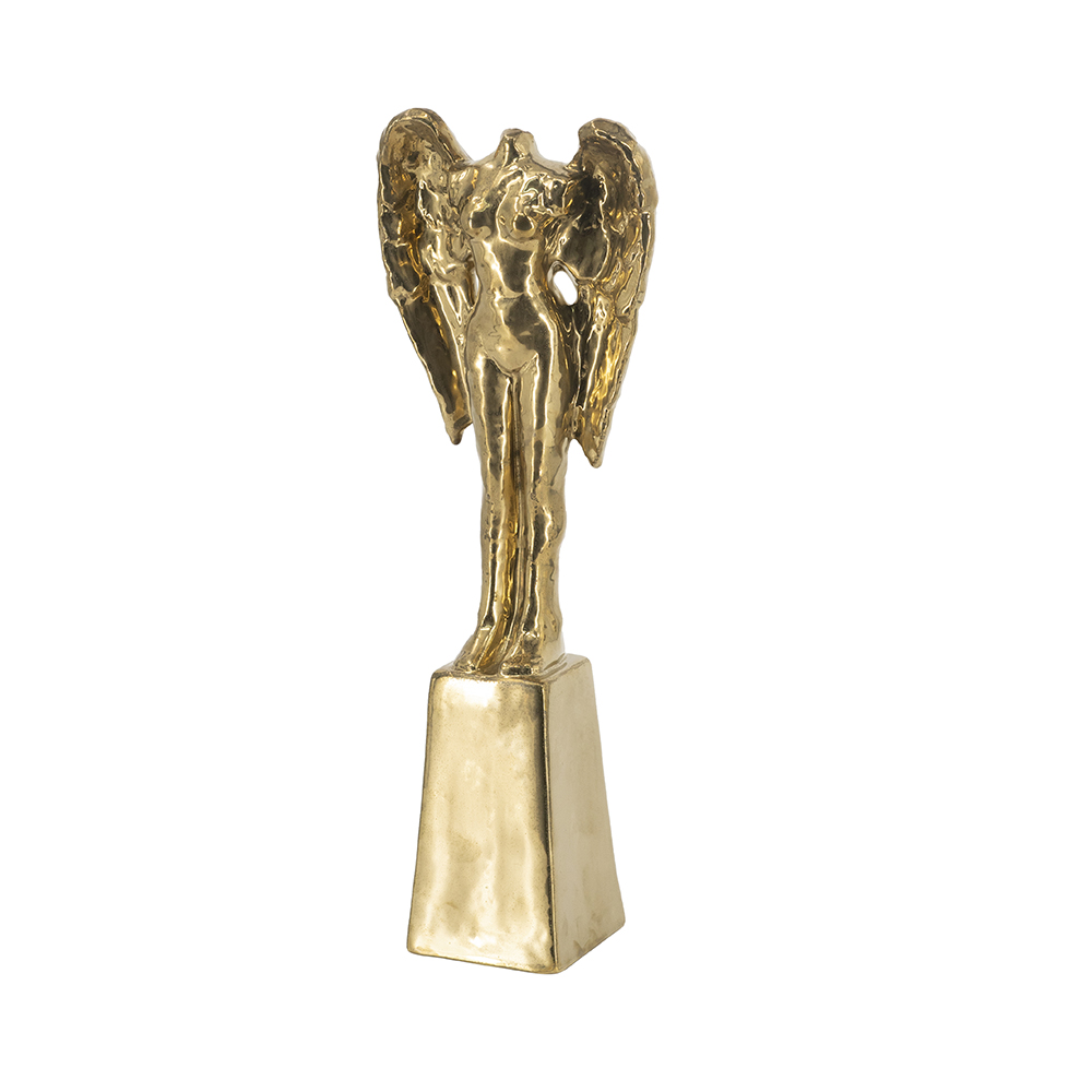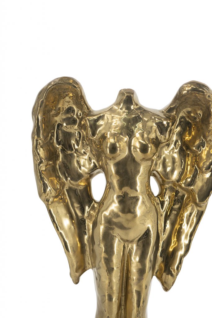 Elevate your space with this exquisite handcrafted ceramic angel sculpture, featuring a graceful headless female form with dramatic wings in a lustrous gold finish. Measuring 20.5″ on sturdy base, it blends abstract artistry with ethereal charm. Perfect for shelves, mantels, or altars, this lightweight piece adds a touch of mystery and elegance, ideal as decor or a meaningful gift for art lovers.