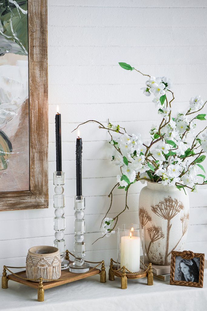 Offering a fresh, modern twist on classic design, this glass candlestick features a slender, column-like silhouette finished in a clear hue reminiscent of sparkling crystal. Whether displayed alone or alongside flowers and greenery, it infuses any space with refined charm.