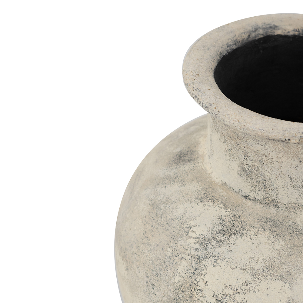 Transform your space with this handcrafted terracotta vase, boasting a distressed, mottled gray-beige finish that evokes aged stone for timeless rustic appeal. Its bulbous body and flared neck create an organic, vintage silhouette, perfect for fresh flowers, faux stems, or as a standalone accent. Earthy tones blend seamlessly with farmhouse, bohemian, or minimalist styles. Durable and versatile.