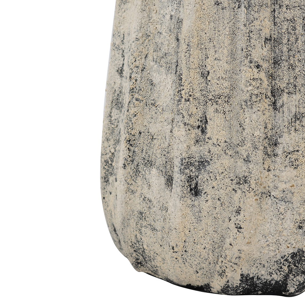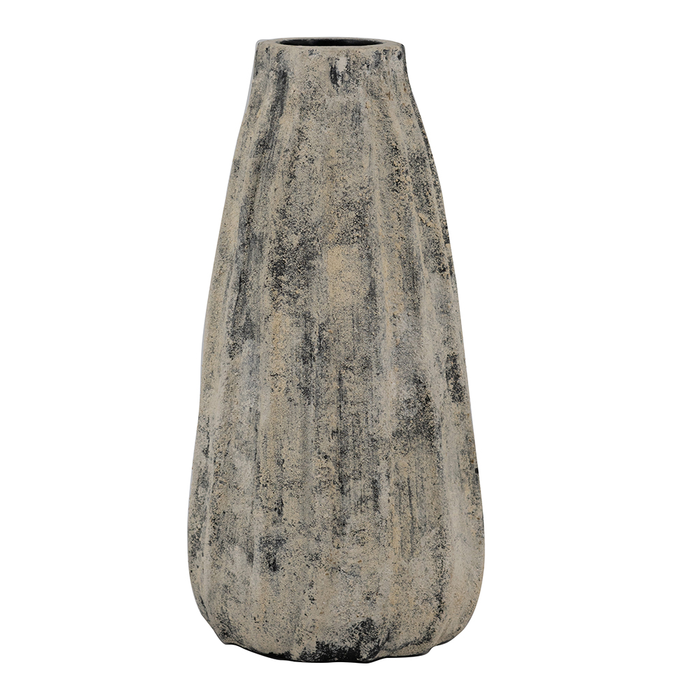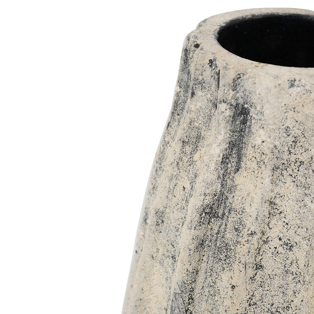 Infuse your space with organic rustic elegance using this handcrafted terracotta vase, featuring vertical fluting and a mottled gray-beige distressed finish that evokes weathered stone. Its slender, tapered shape with narrow neck creates a vintage silhouette, ideal for single stems, dried arrangements, or as an accent piece. Neutral tones blend with bohemian, farmhouse, or minimalist styles.