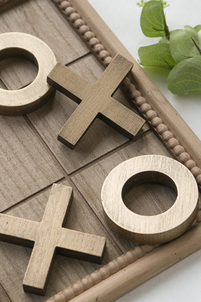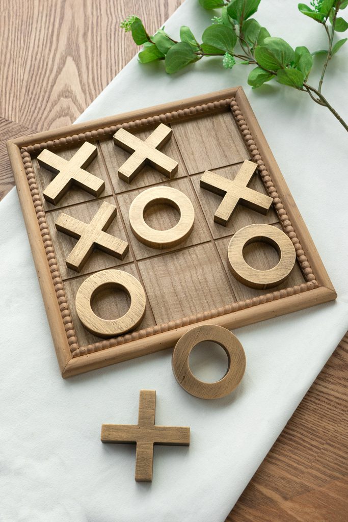 Perfect for a quick break or family game night, this decorative tic-tac-toe set brings a touch of organic elegance to any space. Crafted from a blend of MDF, fir wood, and beech in rich shades of brown and gold, both the board and pieces are designed for lasting beauty and durability.