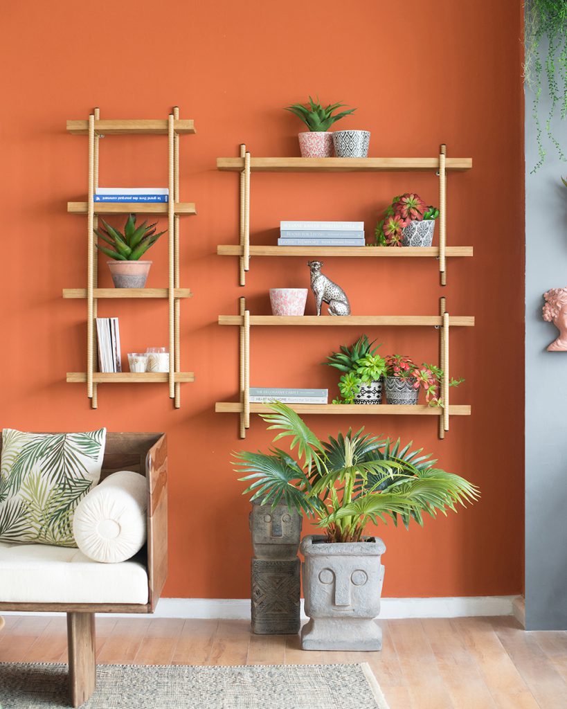 Bring contemporary flair and convenient storage space to any living area with this two-tiered shelf in a natural brown finish.Comprised of mixed materials,this piece offers open storage and wide shelves.This two-tiered unit can be a transitional bookcase in a living room,or it can hold plates and tableware in a dining room.