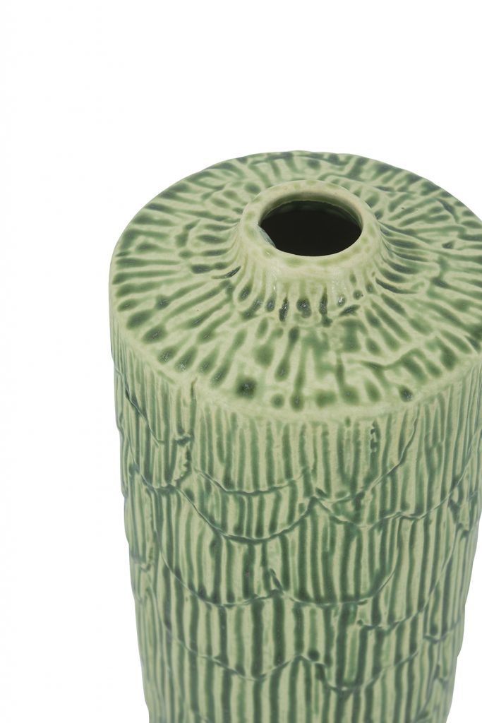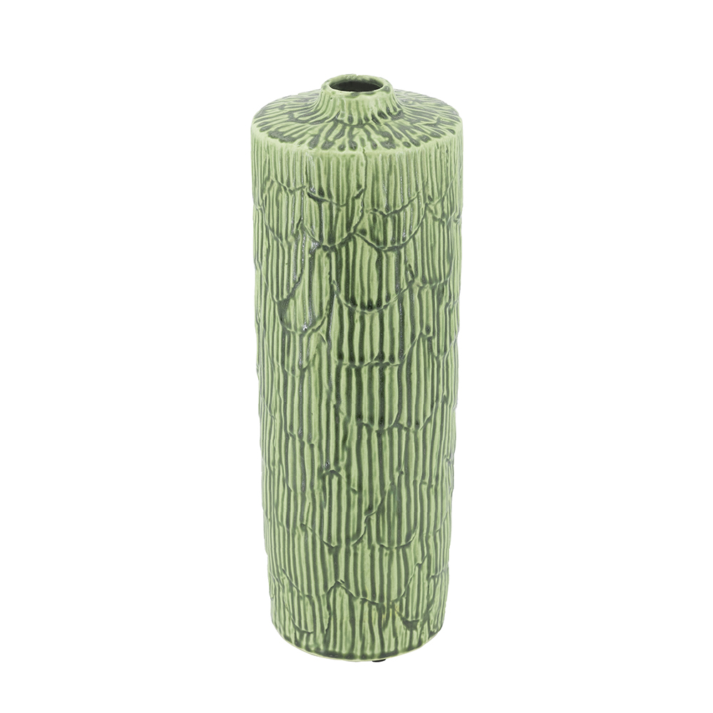 D4.5x14" Ceramic Cylinder Vase with Textured Green Design 6EA/CTN