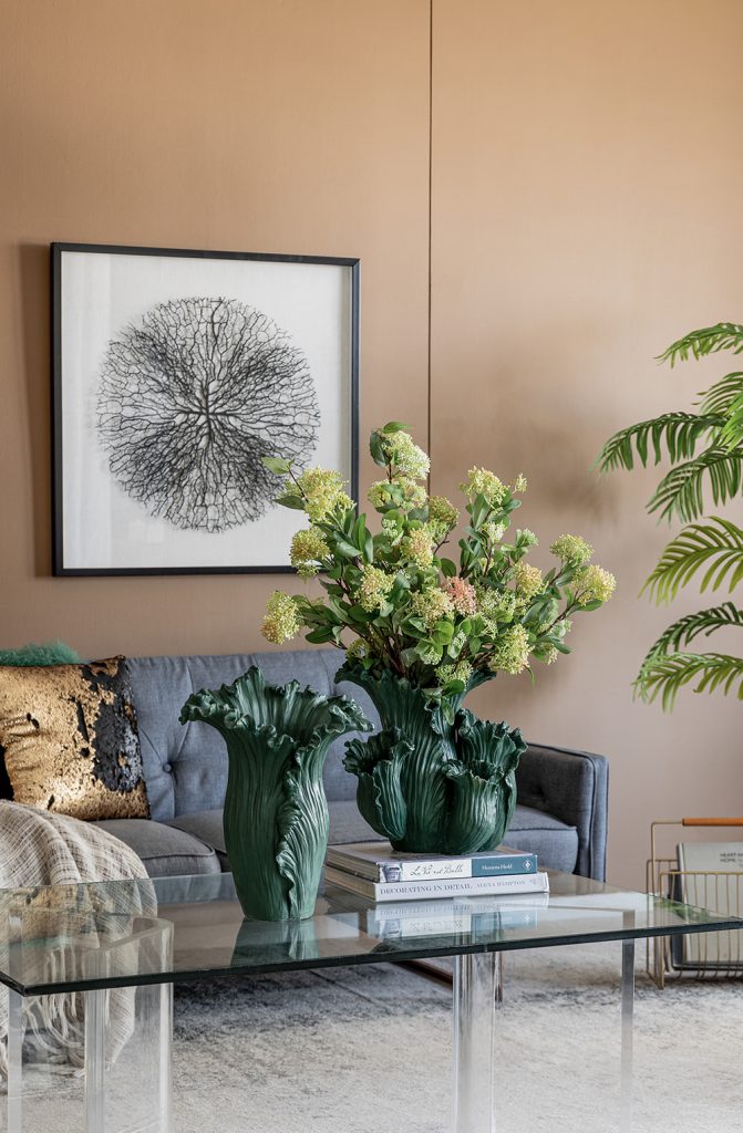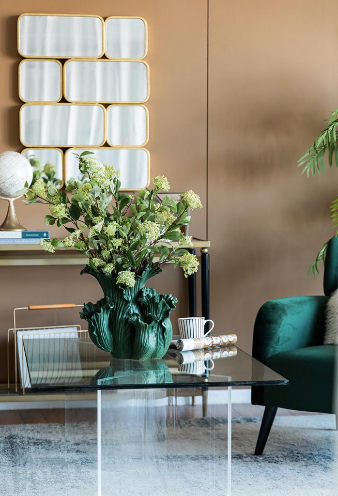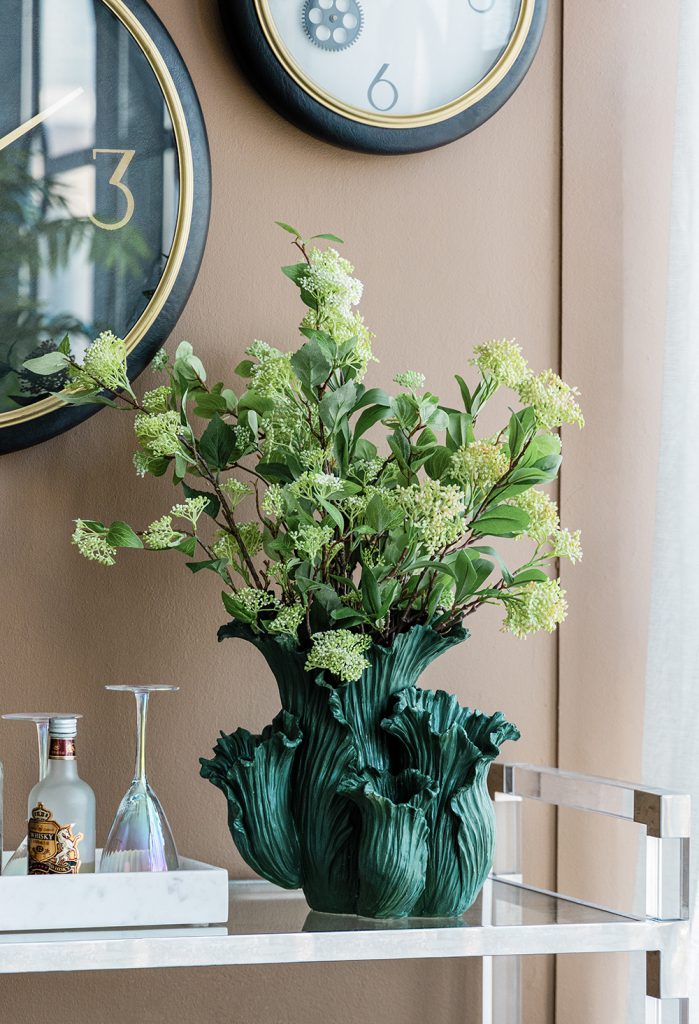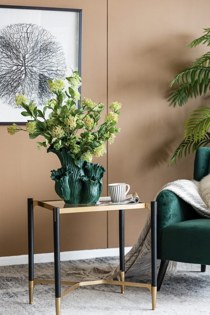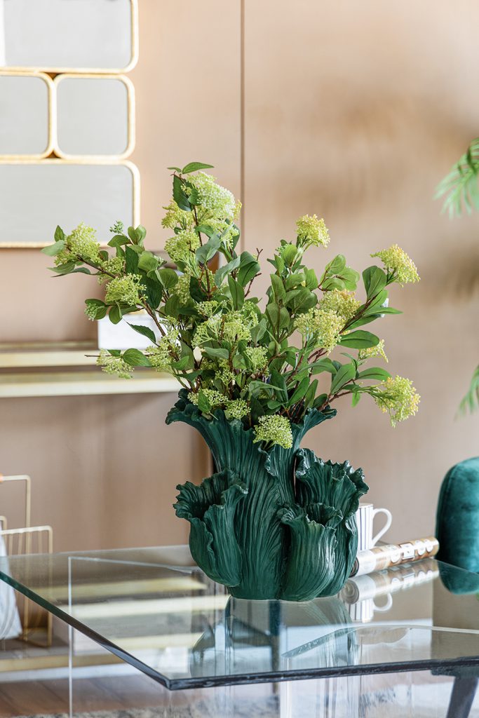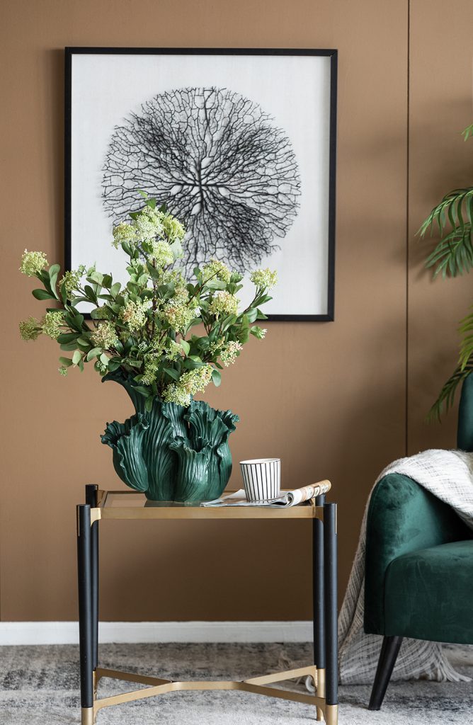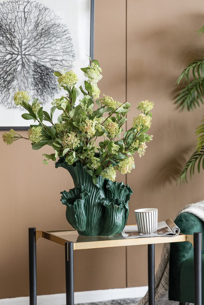 Reminiscent of spring,this charming floral vase is designed to delight with its intricate design.With its slim silhouette and warm colors,this piece is perfect for filling a space with eye-catching elegance.
