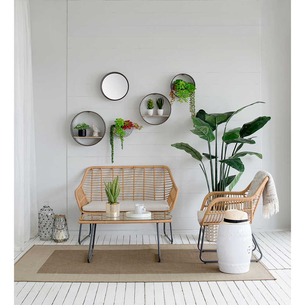 With its graceful silhouette and rustic texture, this teardrop vase is a unique accent for any modern space. It is a large, smoothly curved clear glass vessel wrapped completely in black metal wire. Willow accents add to this piece’s elegant yet natural decorative effect.