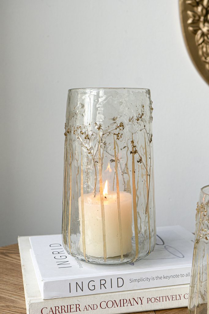 Offering a fresh, earthy twist on the classic cylindrical silhouette, this glass vase features a clear finish adorned with sprawling green wildflower motifs. Perfectly sized to stand alone or complement lush floral arrangements, it is sure to capture the eye from any tabletop, mantel, or centerpiece display.