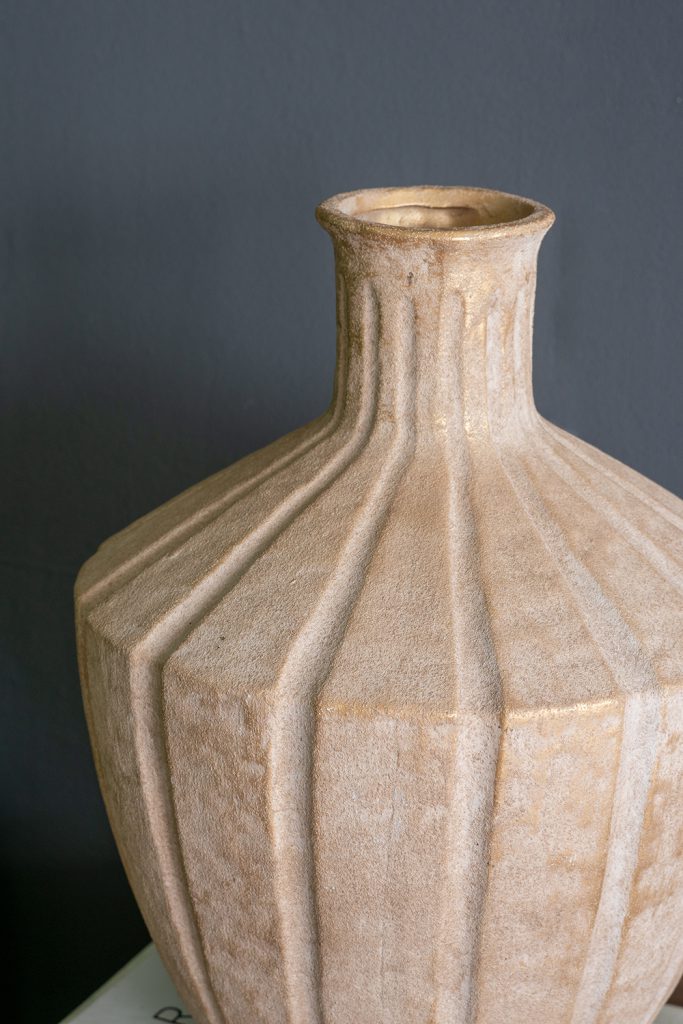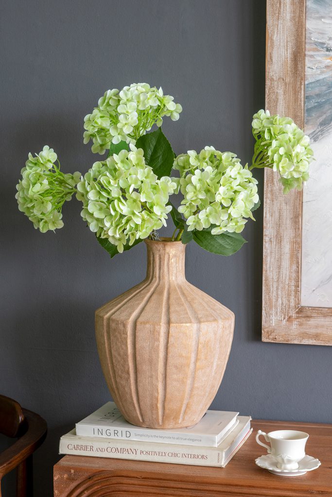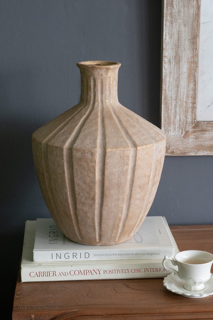 Inspired by the rugged beauty of ancient Tuscan pottery, this vase boasts a wide, rounded silhouette, a subtle ridged texture, and an understated gold hue. Whether displayed alone or paired with vibrant florals, it will bring a burst of natural charm to your living room, entryway, bedroom, or office.