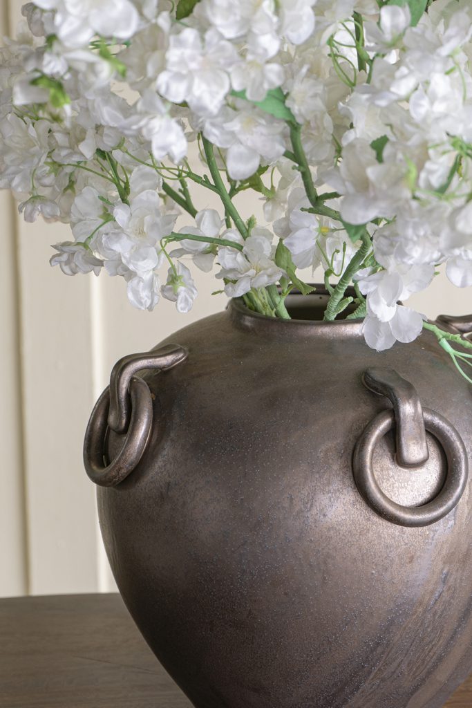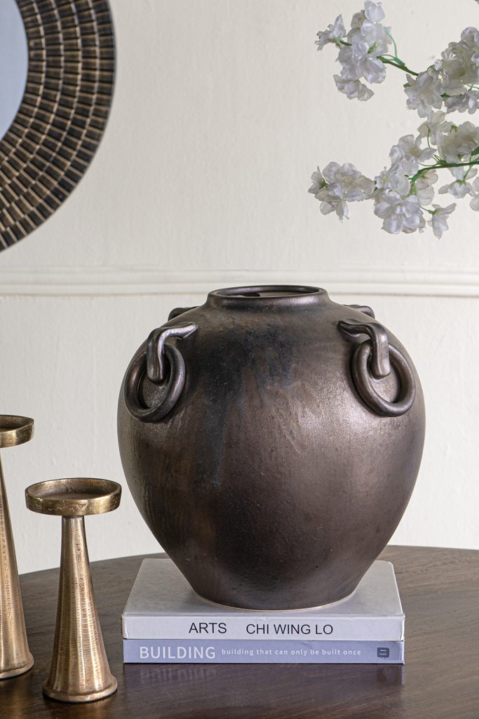 11.5x11.5x12" Round Ceramic Vase with Bronze Reactive Glaze Finish and Sculptural Ring Handles 2EA/CTN