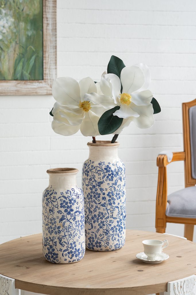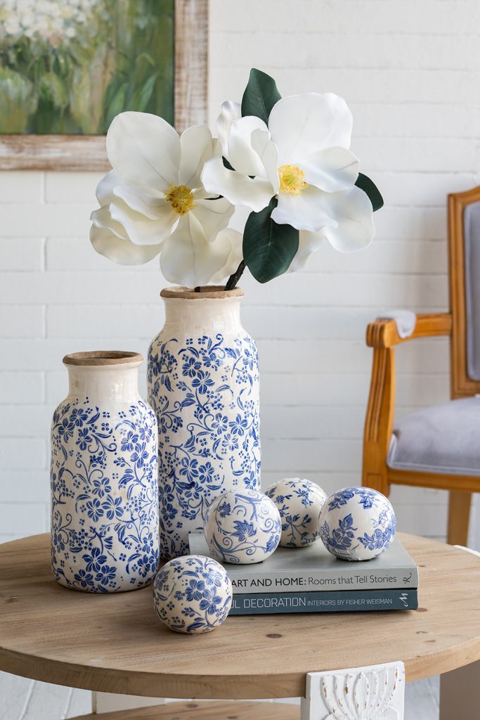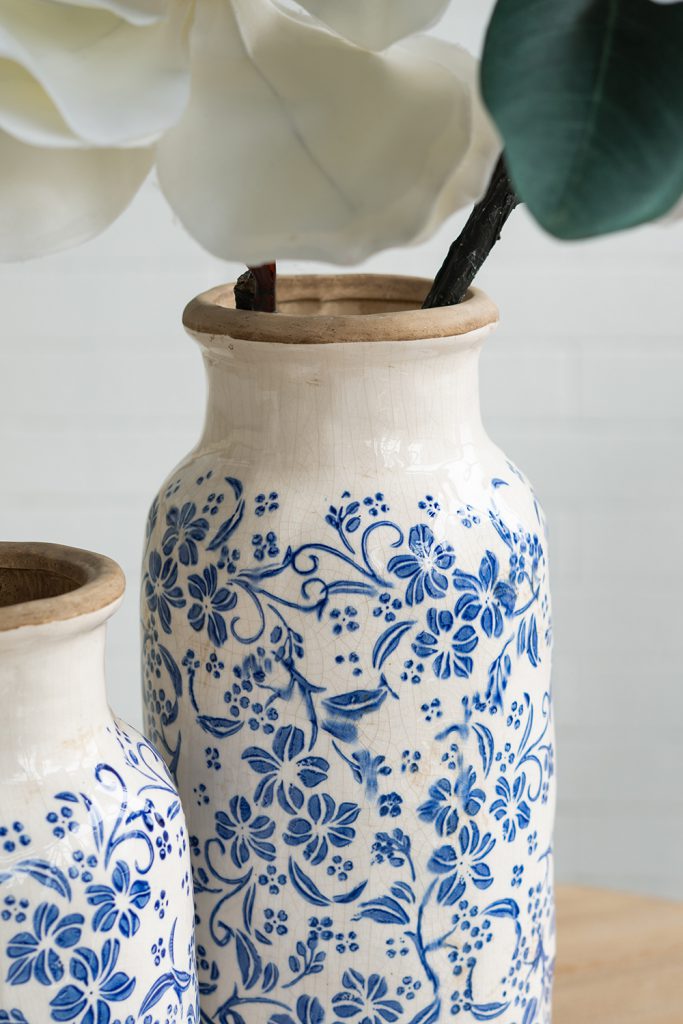 Drawing inspiration from the elegant designs of traditional Delftware pottery, this vase features a sleek, rounded silhouette, a gently flared opening, and intricate blue floral motifs that weave gracefully across a crisp white backdrop. Whether displayed alone or filled with lush blooms, it is sure to draw the eye from any tabletop, mantel, or sideboard.
