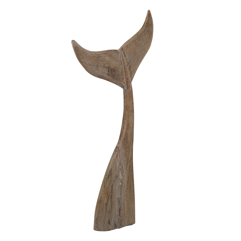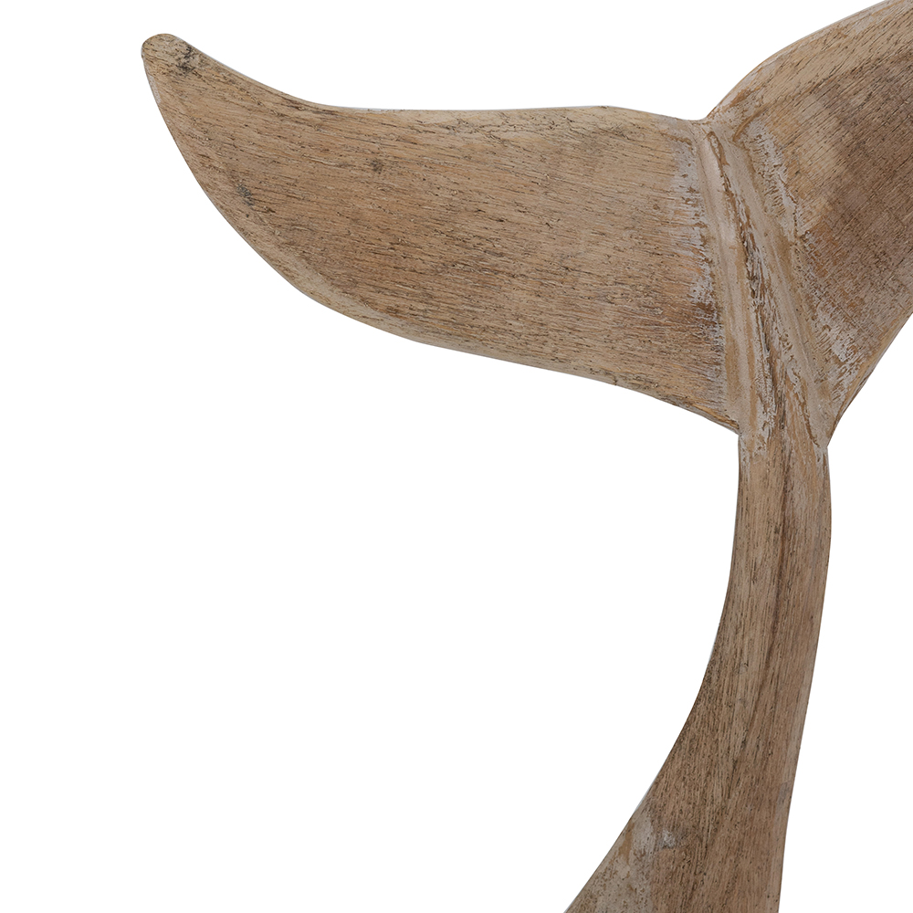 Infuse your space with coastal serenity using this hand-carved albasia wood whale tail sculpture. Featuring a distressed, natural wood finish that highlights organic textures and grains, it evokes the majesty of the ocean. Perfect as a floor-standing accent in living rooms, entryways, or patios. Symbolizing strength and grace, this 20.5×4.5×39.5″ piece suits boho, rustic, or beach-themed decor.