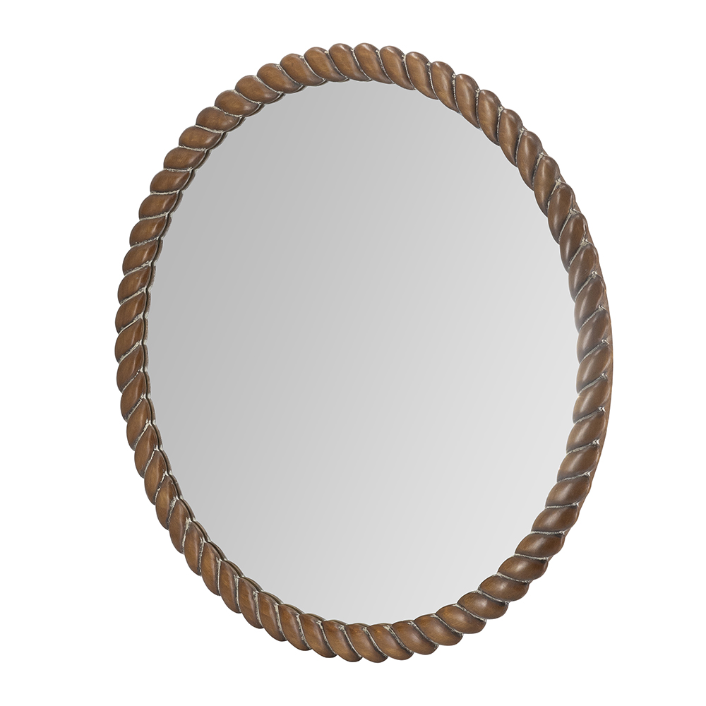 Transforming the classic round silhouette into an earthy statement piece, this wall mirror features a warm natural brown finish and an intricately textured frame. Crafted from sturdy pine wood, it serves as a long-lasting addition to any living room, entryway, bedroom, or office.